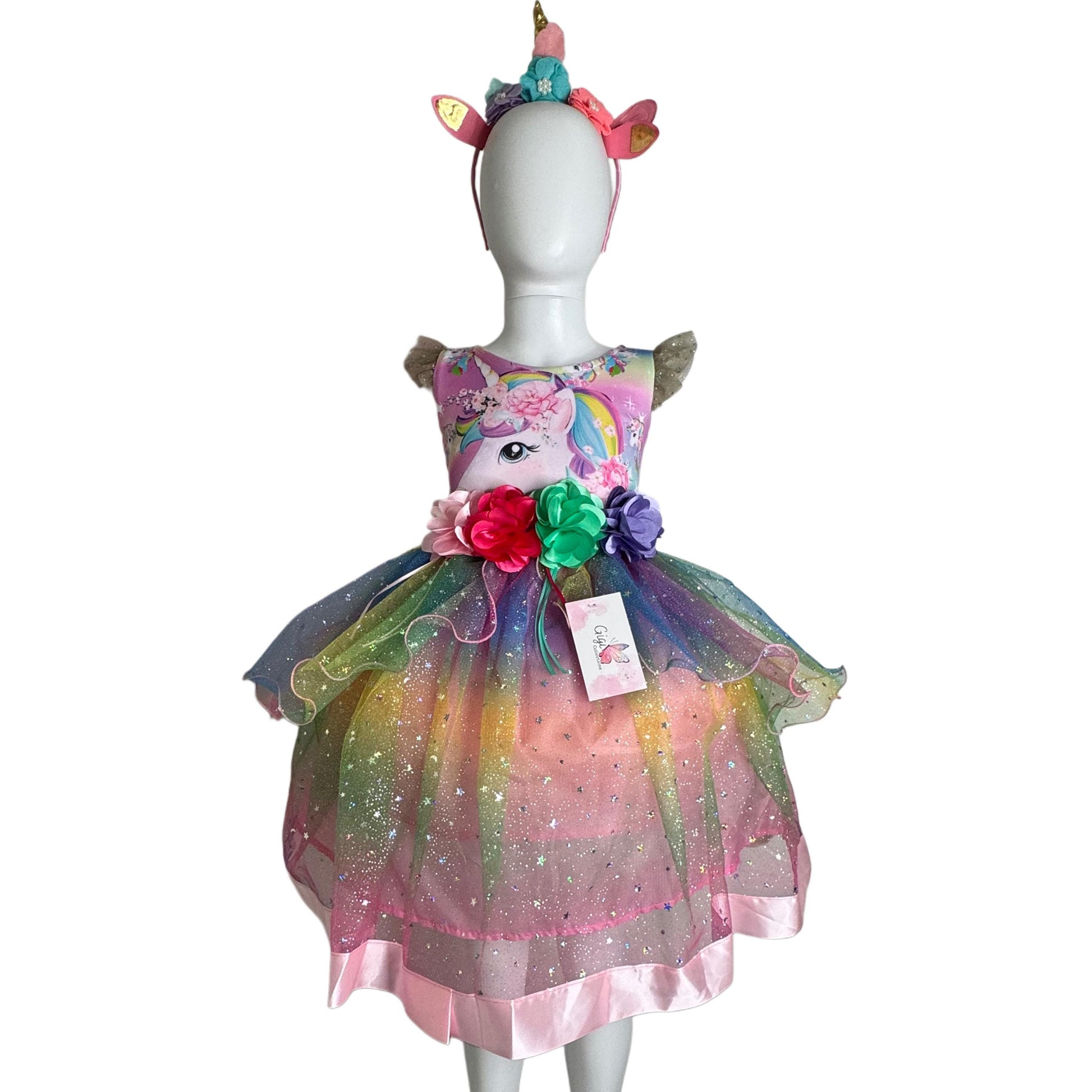Magical Unicorn Rainbow Tutu Dress with Headband – Birthday Party Outfit