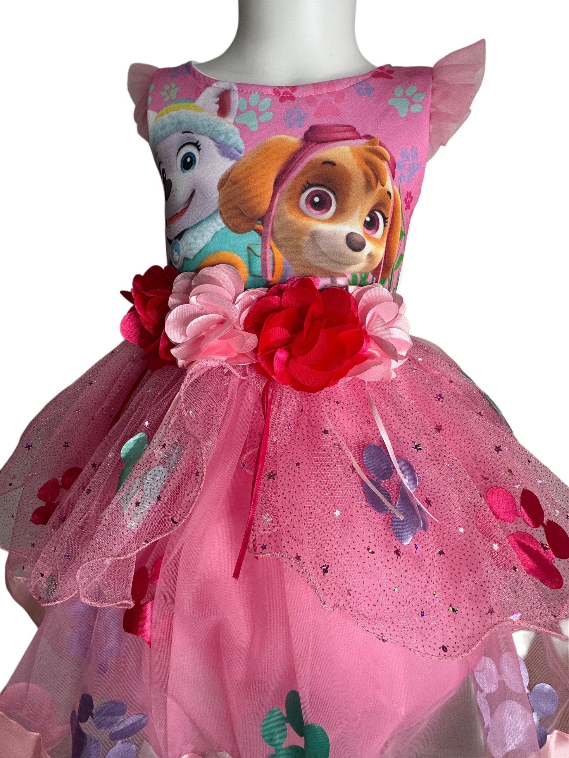 Your little one will shine in this adorable Paw Patrol Princess Dress featuring Skye and Everest! π Perfect for birthdays, theme parties, photo shoots, or any special occasion. Handmade with love, it has a soft cotton bodice, layered tulle skirt with glitter, and colorful paw prints for an extra magical touch.